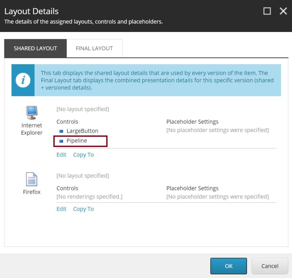 We fill out the fields and open the Presentation Details. First we remove the “Pipelines” control.