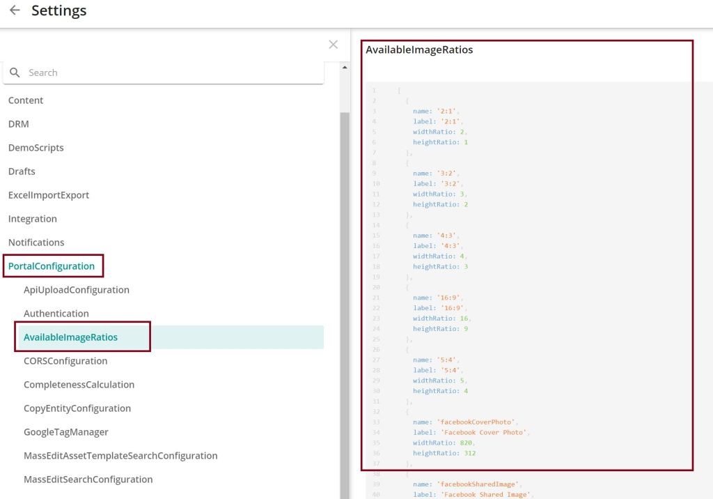 Click on “PortalConfiguration” and then “AvailableImageRations”. Then you see the defined ratios in JSON format.
