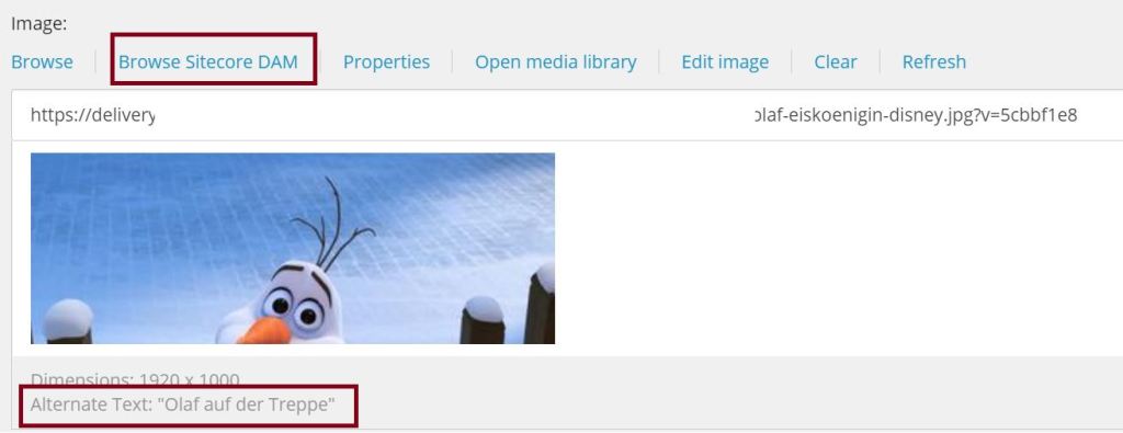 When installing and configuring the connector for choosing Content Hub assets in Sitecore XP there is one thing you might want to configure as well: Which property comes from Content Hub as alternate text.