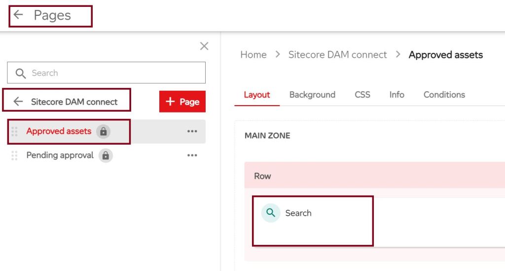 Therefore you navigate in the Content Hub to the configured Search Page via Manage > Pages. In default case you go to Sitecore DAM connect > Approved assets.