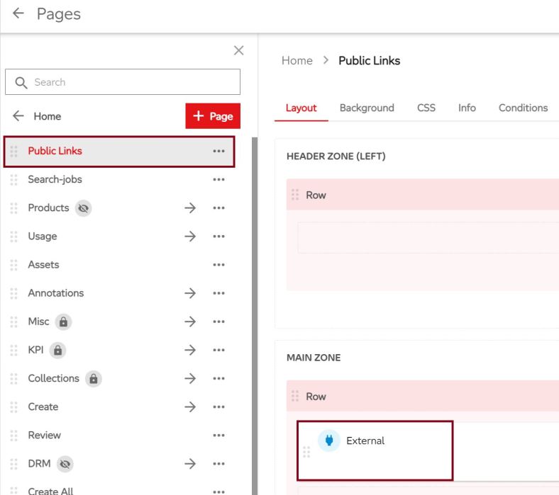 But this is a feature, which could be very senseful, so I tried to find out what we can do in Content Hub for achieving the goal. We can’t configure it in the search component used on the assets page for example. So I tried the way with a new page and an external page component and here is what I found out: