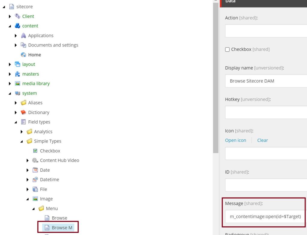 For the control, called from Content Editor, we do not have to change the configuration. The message is configured in the core DB item.
