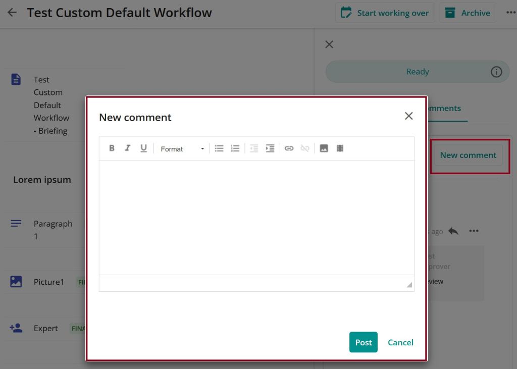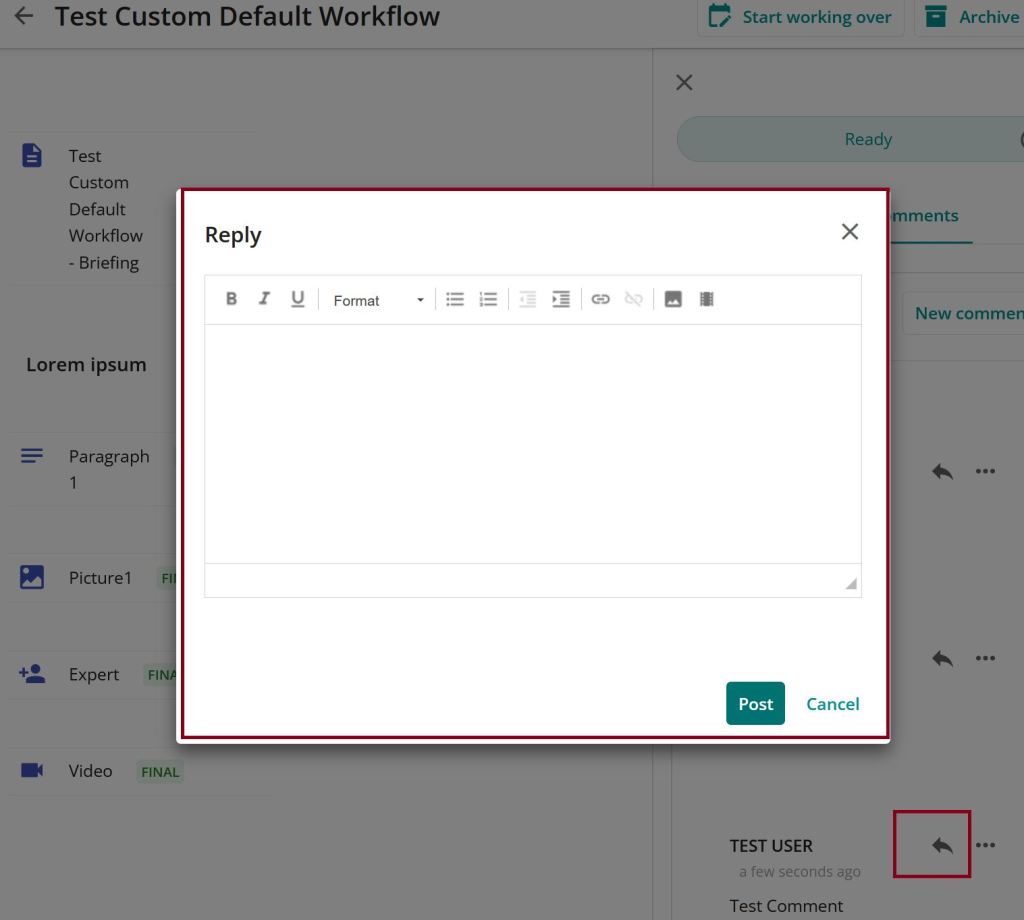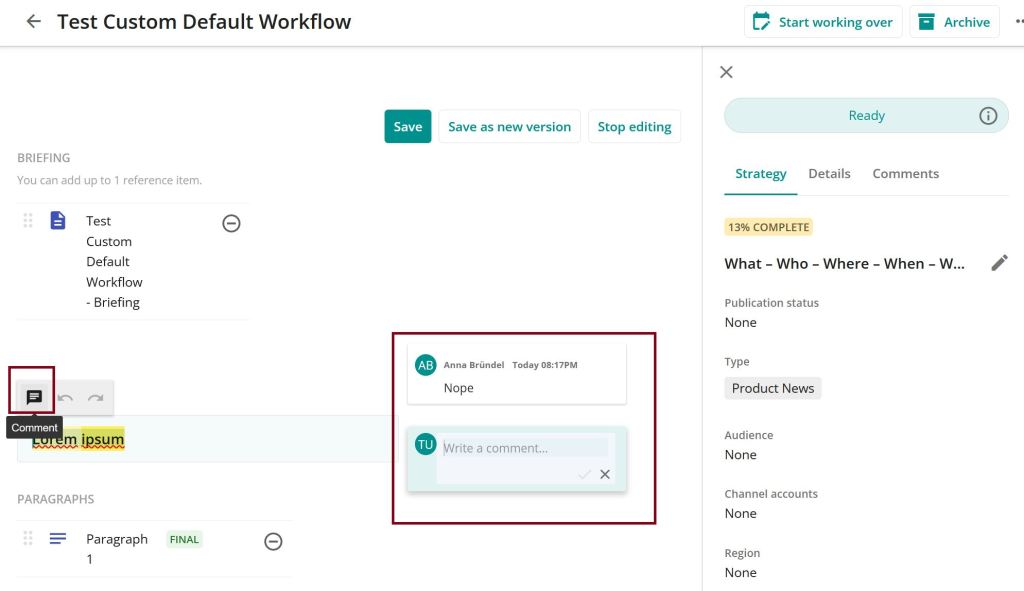 But in our case this was not what we wanted. There should be a reviewer usergroup who is not able to edit the content, but comment it. So what I set up is a new tab in the Tab component on the right of the Content detail page.