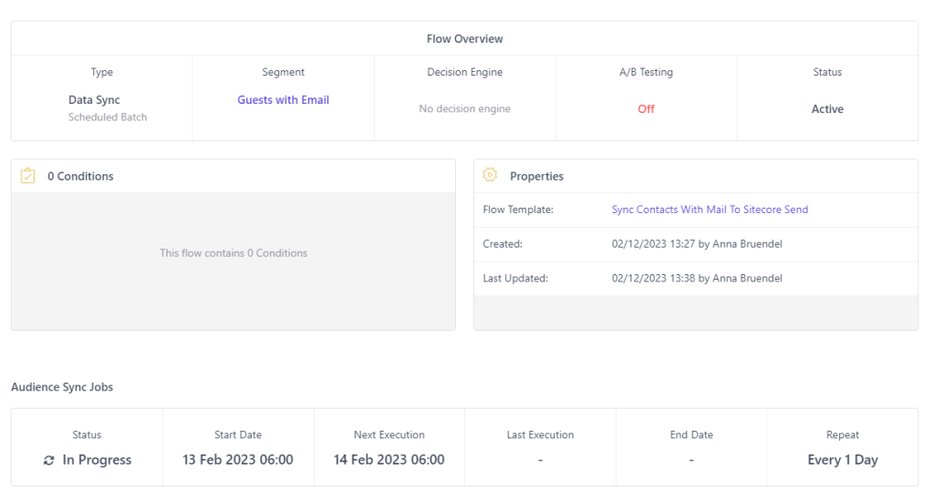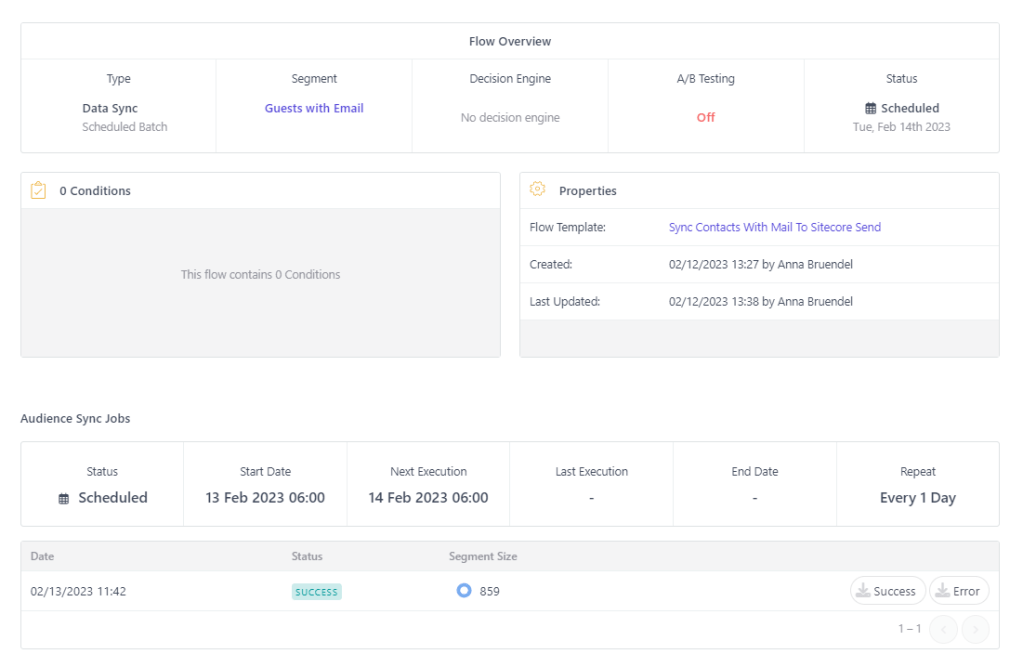 Once the Audience Sync is done successfully, the detail page in Sitecore CDP looks like this: